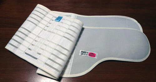 いつものこのコルセットを装着。湿布が剥がれにくくするのと、若干のパワードスーツ感もある。